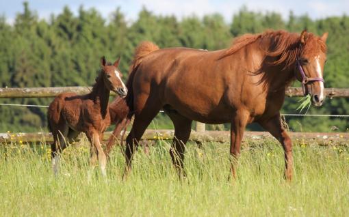 Dillon ist ein richtig schickes Fohlen mit seinen 4 weißen Stiefeln und der Blesse, und die kleinen Löckchen erst....