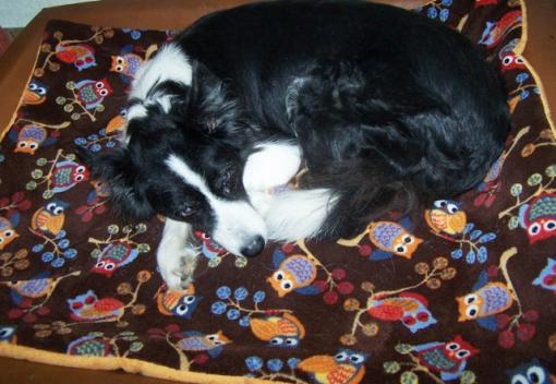 genießt es auf ihrer neuen Decke zu liegen.