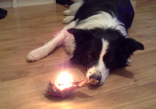 Wir gratulieren unserem R-Wurf zum 2.ten Geburtstag mit einem aktuellen Foto von Rinty, der es kaum abwarten kann, endlich sein Büffelohr zu bekommen.