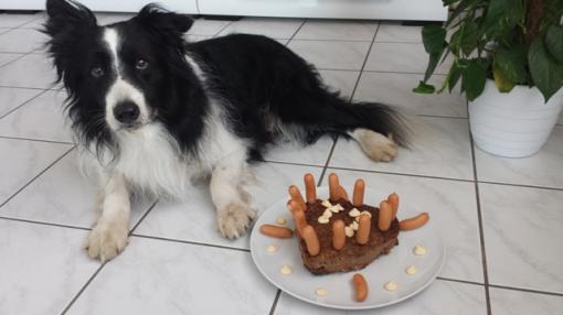 Indi freut sich schon auf seine Hackfleischtorte, die er heute mit seinen Freunden Eddy und Twin verputzen darf.