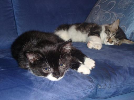 Erst einmal unser Familienzuwachs, Felix -schwarz-weiß und Lilly- getigert-weiß. Die beiden leben bei Opa und Oma und sind einfach nur goldig. Ich bin total verliebt in die kleine Lilly, das nutzt sie auch voll aus. Ihr Bruder Felix ist um einiges einfacher. Eigentlich wollte ich ja 2 schwarz-weiße Kater, aber als ich Lilly sah, hab ich alle Vorsätze über Bord geworfen.Ich liebe dieses zickige kleine Fellknäuel. Ach wie habe ich doch dieses Schnurren vermisst.